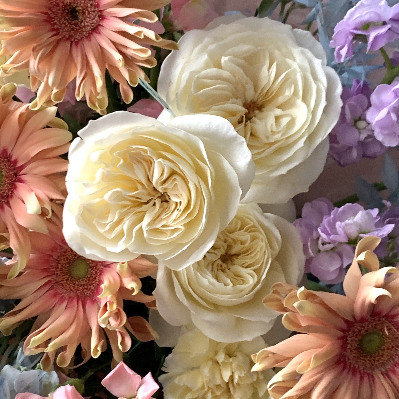 Свежие цветы от Lacy Bird доставляются в фирменной упаковке, которую необходимо снять при установке в вазу. Не срезайте ленту, связывающую букет для сохранения формы.
