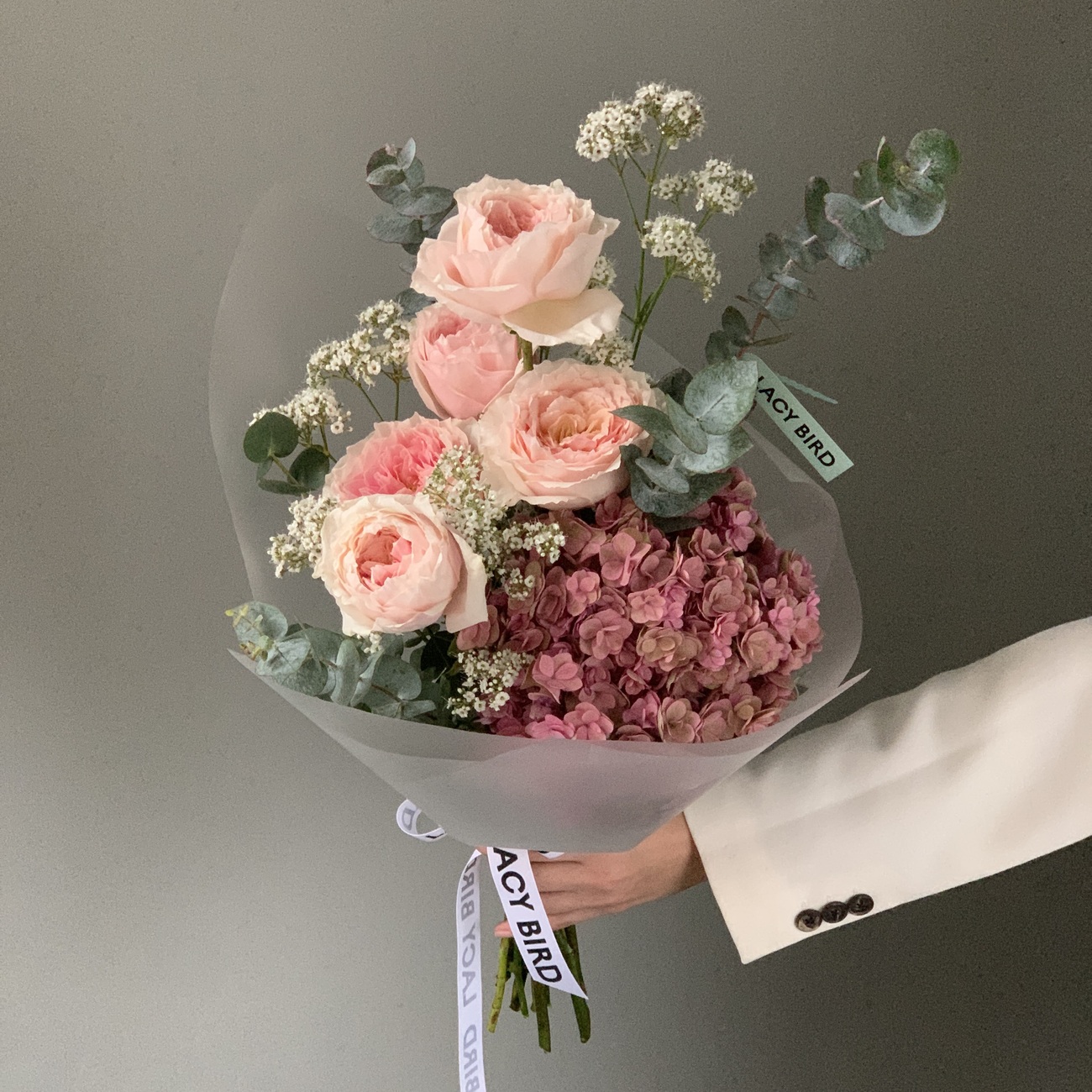 Свежие цветы от Lacy Bird доставляются в фирменной упаковке, которую необходимо снять при установке в вазу. Не срезайте ленту, связывающую букет для сохранения формы.