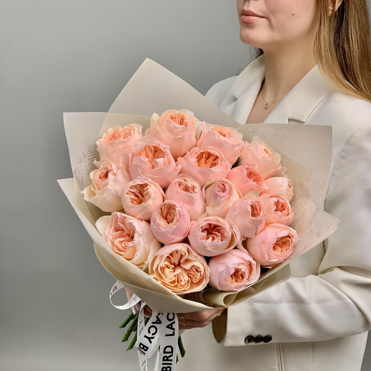 Свежие цветы от Lacy Bird доставляются в фирменной упаковке, которую необходимо снять при установке в вазу. Не срезайте ленту, связывающую букет для сохранения формы.