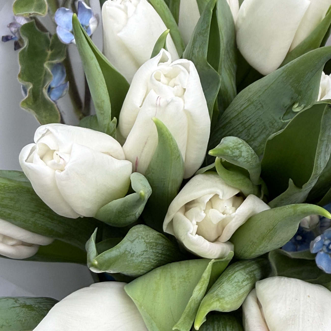 Свежие цветы от Lacy Bird доставляются в фирменной упаковке, которую необходимо снять при установке в вазу. Не срезайте ленту, связывающую букет для сохранения формы.