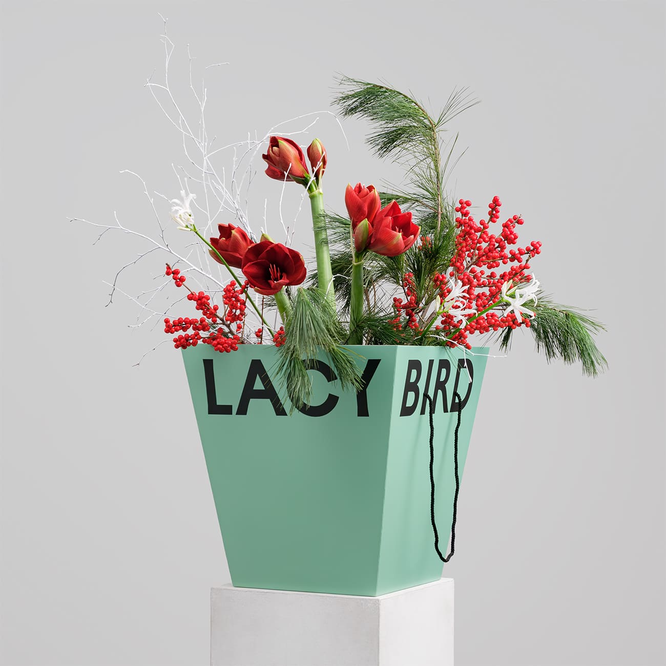 Свежие цветы от Lacy Bird доставляются в фирменной упаковке, которую необходимо снять при установке в вазу. Не срезайте ленту, связывающую букет для сохранения формы.