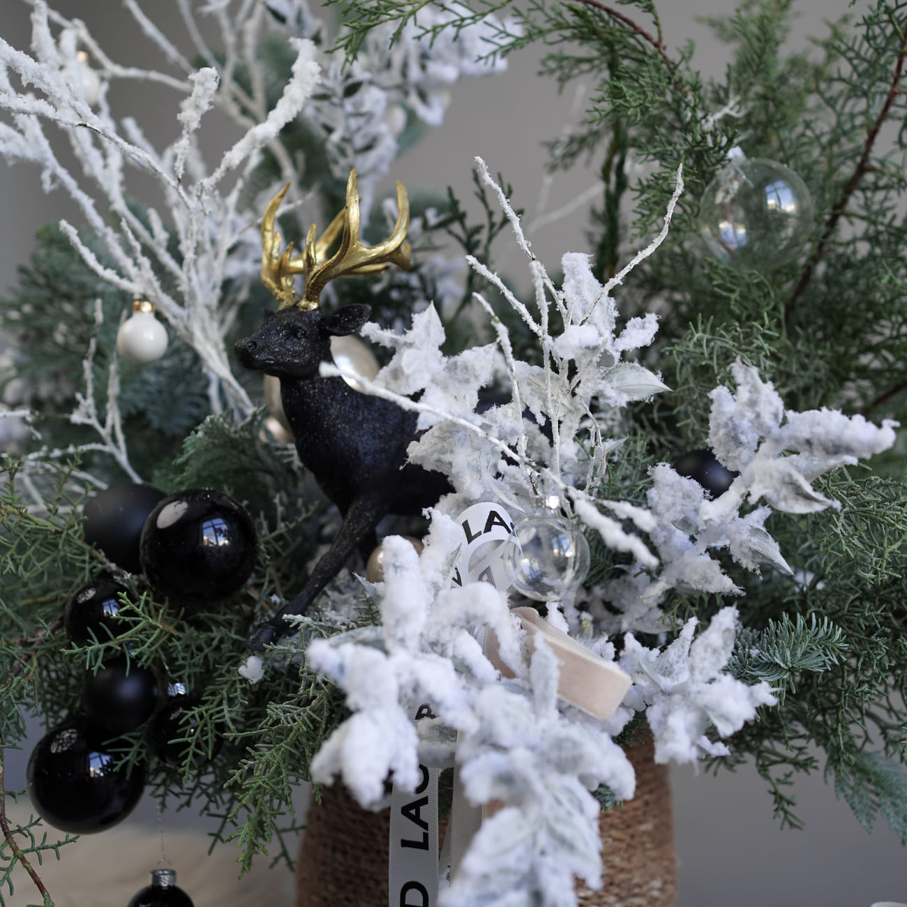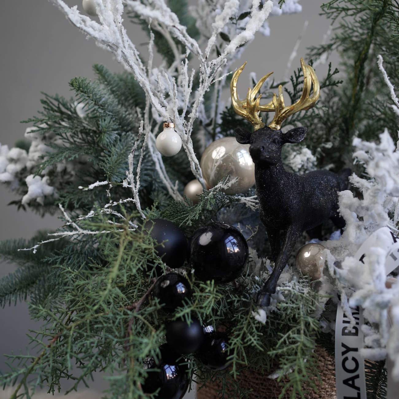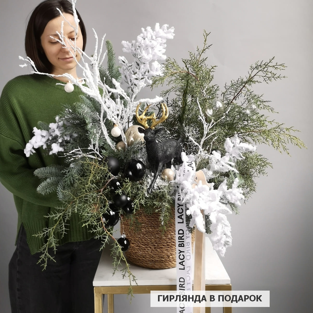 Погрузитесь в атмосферу зимнего волшебства с нашей новогодней композицией «Сказочный олень». Эта композиция, выполненная из натуральных хвойных материалов, передает дух леса и свежесть зимы. Элегантные ветви хвои, дополненные декоративными элементами и фигуркой оленя, создают уютный и стильный акцент в вашем интерьере.