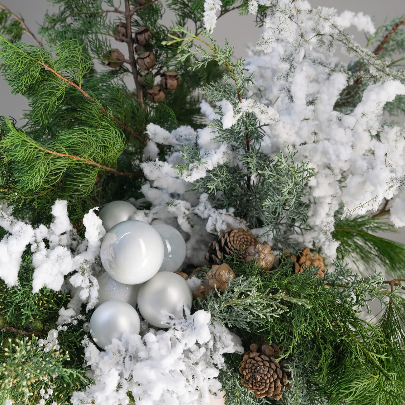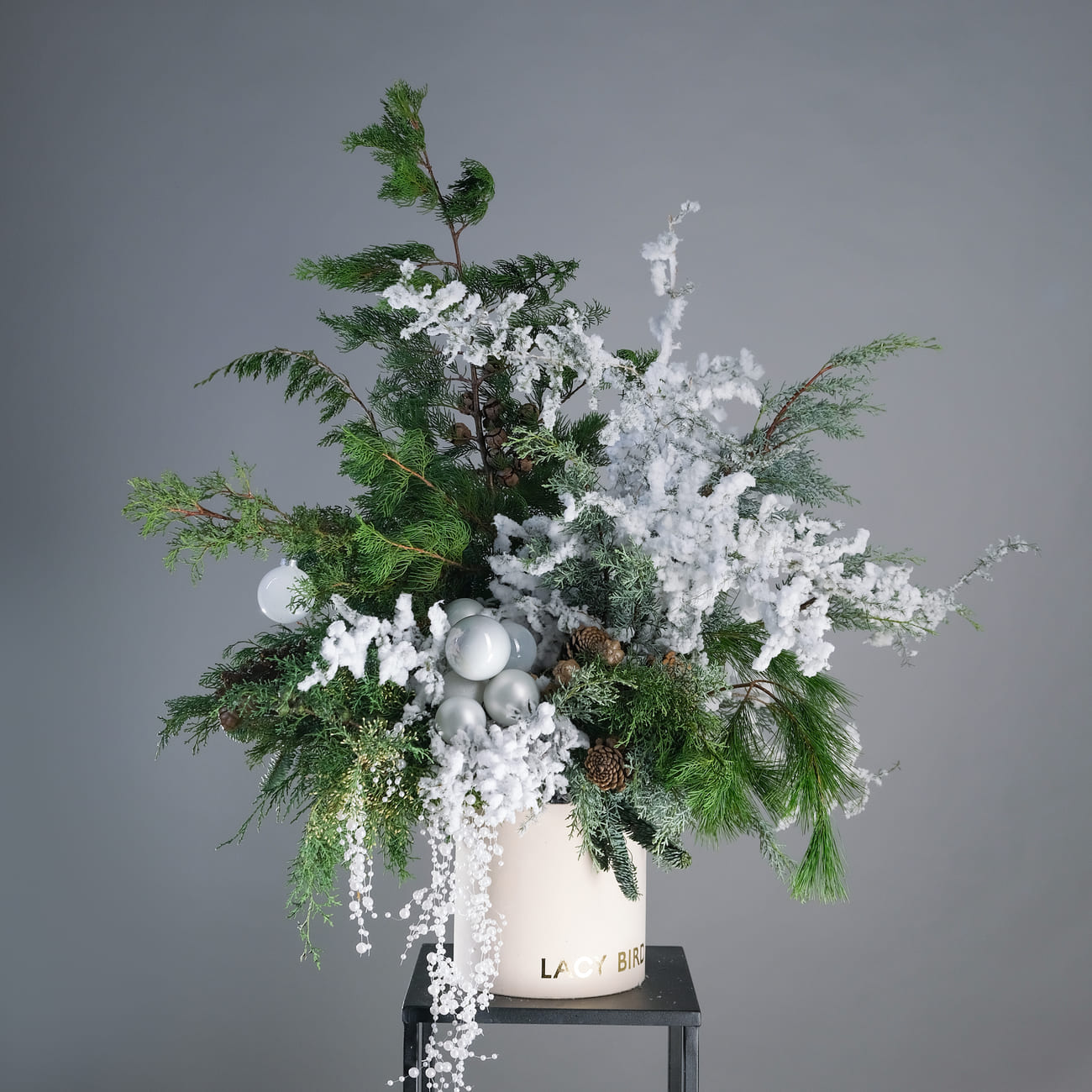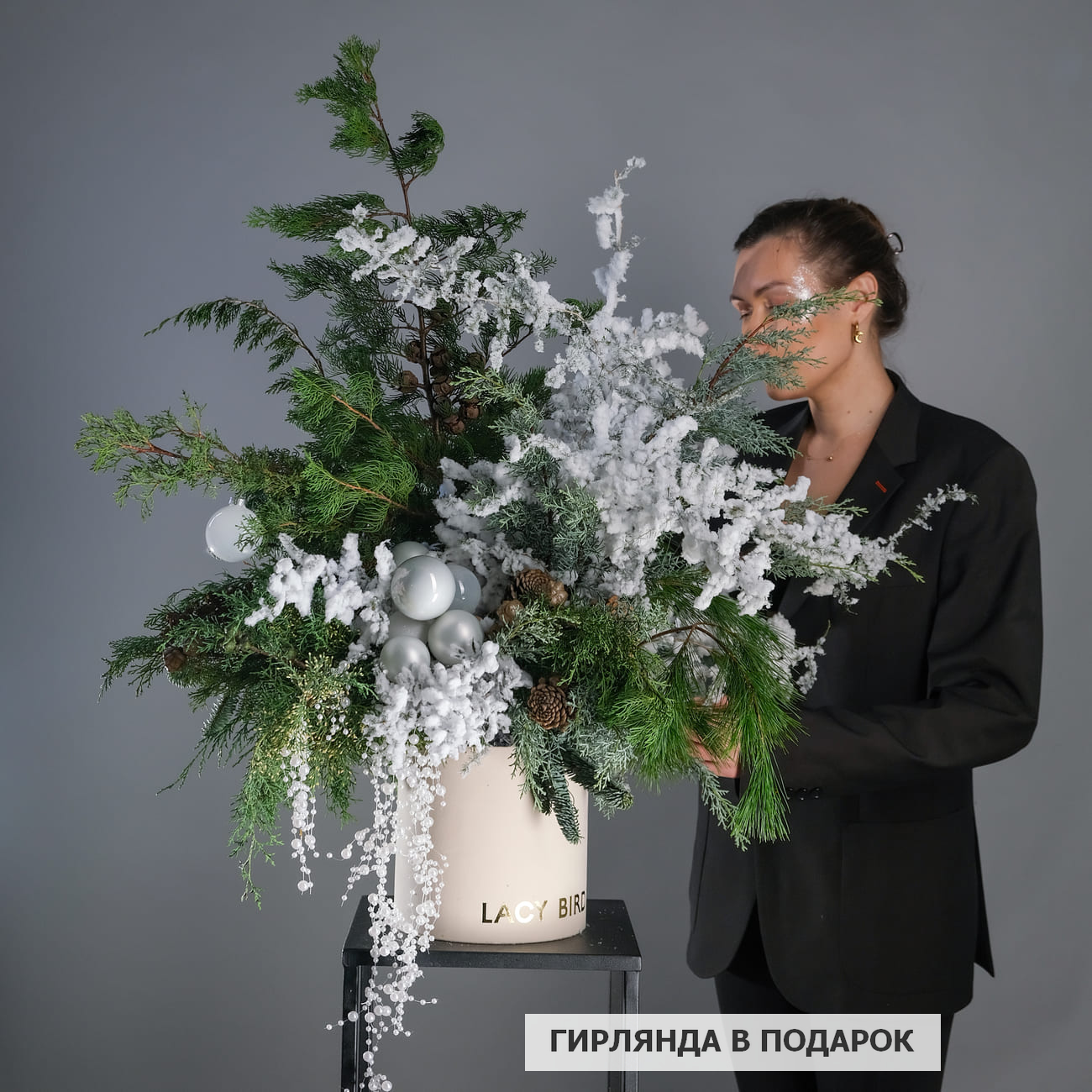 Новогодняя коробка "Секрет под елкой" — это воплощение уюта и волшебства зимних праздников. Она собрана из натуральных хвойных материалов, дополненных заснеженными ветками и изысканными украшениями. Эта композиция станет стильным акцентом в вашем доме, создавая атмосферу загадочности и радости, словно спрятавшийся под елкой сюрприз. Каждая деталь коробки передает дух Рождества, приглашая вас и ваших близких насладиться чарами новогодней ночи.