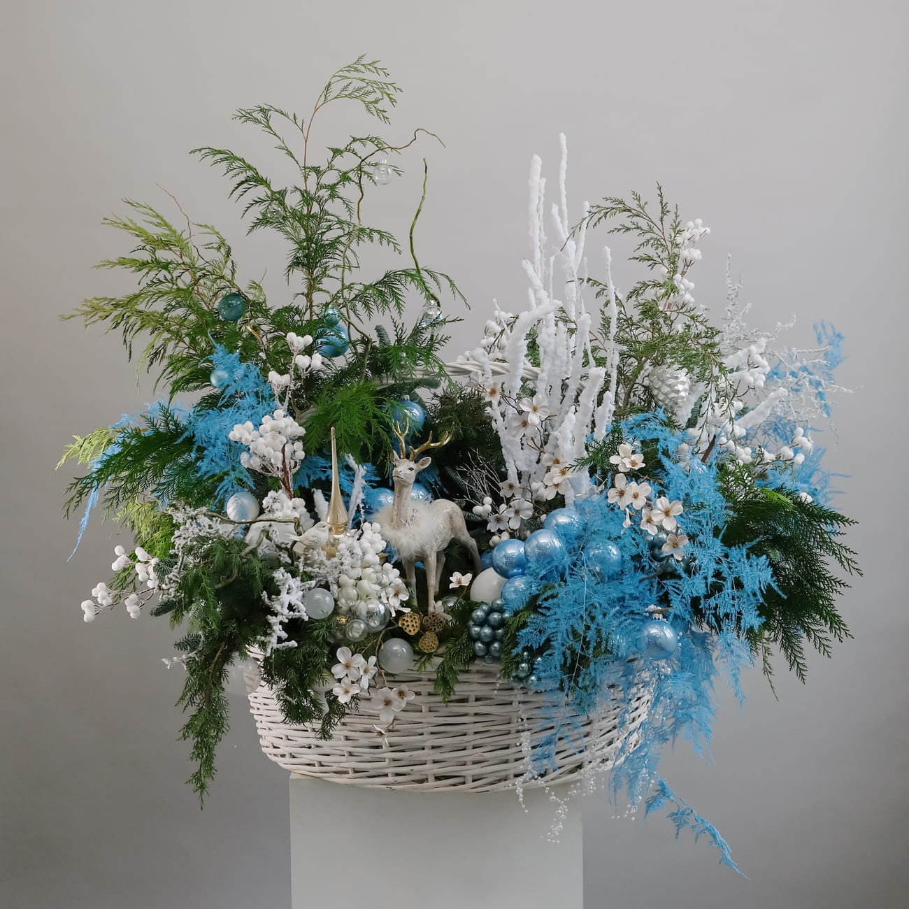 Погрузитесь в атмосферу зимней сказки с нашей новогодней корзиной "Снежная королева". Эта изысканная композиция из натуральных веток хвои, создающих неповторимый аромат зимнего леса. Каждый элемент композиции тщательно подобран, чтобы подарить уют и тепло в холодные дни.